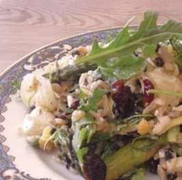 3. To roast the asparagus, heat oven to 400 degrees. Chop spears into 1 1/2” to 2” pieces, place on a cooking sheet, and drizzle with olive oil, a bit of lemon, salt and pepper and sprinkle with half of the chopped herbs. Cook for about 5 minutes and check, shifting the sheet to allow the spears to roll, then cook for another 5 minutes or so - asparagus should be tender but retain a slight crunch. For the last 2 minutes, shift the oven to broil and get a little crisping to the surface. Remove from oven and set aside.