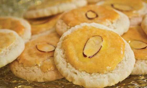slo life magazine | 45 Have a recipe to share? Go to slolifemagazine.com to tell us about it. SLO LIFE I am lucky to have this history, and now with her almond cookie recipe, it is my turn to share. 1. Preheat oven to 350 degrees. 2. Combine oil, butter and sugar until well mixed. 3. Beat in eggs and almond extract. 4. Sift flour, baking soda, baking powder and salt in a separate bowl. 5. Slowly add flour mixture into the wet ingredients. 6. Roll about a teaspoon of dough into a ball and flatten onto an ungreased cookie sheet. 7. Brush the tops of cookies with beaten egg yolks and press an almond into center of cookie. 8. Bake 10 - 12 minutes. aL mond cookies Family Recipe by Fong Gong Makes 4 dozen Cooking time: 10 - 12 minutes 5 cups flour 2 teaspoons baking powder 1 teaspoon baking soda ¼ teaspoon salt 2 cups sugar 2 eggs 1 cup canola oil 2 sticks butter 2 tablespoons almond extract 2 egg yolks, lightly beaten appoximately 48 almonds Central Coast Farmers’ Harvest • Fresh Picked & Locally Grown Pesticide Free Produce • Direct Delivery to Your Home or Business • Weekly or Every Other Week Delivery Option • No Contract Required Eat Healthy, Eat Local Serving • San Luis Obispo • Avila • • Los Osos • Five Cities • • Nipomo • www.sloveg.com 805.709.2780