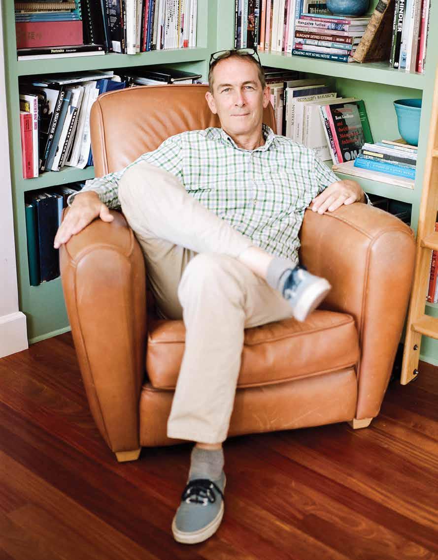 The full Meet Your Neighbor piece wasn’t drafted until after the cover shoot, but when I was able to read the article, it finally occurred to me that “Dare to be Dull” makes perfect sense for Eric, who created Simple Shoes, as well as several other sports clothing and footwear brands, and then stepped away from a life that was outwardly successful, but rather complicated, and not personally fulfilling for him. It’s always interesting to me the “tells” that come about in these shoots—and Eric picking up that particular book says a lot about him and what he’s all about.