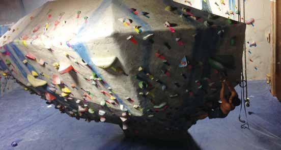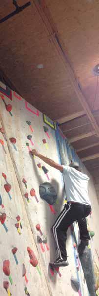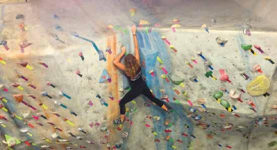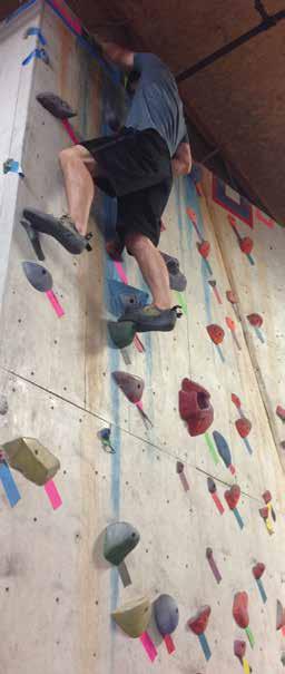 to 20 feet high. Every wall is littered with colorful holds of all shapes and sizes and the routes are marked with different colored tape so you can easily follow the lines up the walls. Ranked from beginner to advanced, you can ask any crew member where to start out. Even beginners get a huge sense of accomplishment when they top out on a route and conquer it.