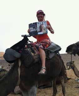 This is a photo of Kyle Griffith. She is wrapping up a read of SLO LIFE MAGAZINE before heading off to camp out in the Sahara. No joke. Camel ride out to an overnight camp! I took her photo and can vouch for all of it... even the sand storm that happened that night. I was sleeping (or trying to) on the mat next to her. Photo taken 29 Aug 2014.
