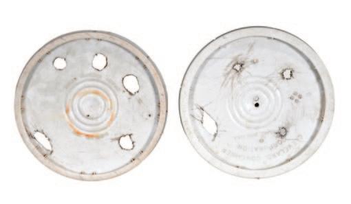 Cut out found plastic lids. Excellent found condition. 12" diameter.