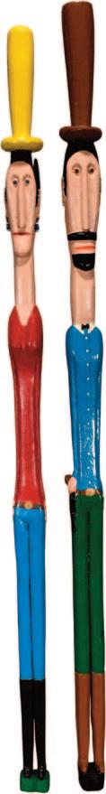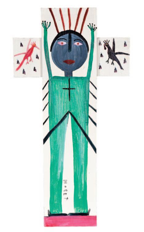 Carved and painted wood with mixed media.