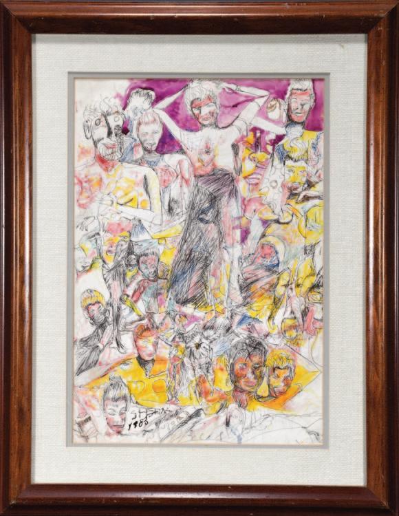 Signed. Ink and pastels on paper. Excellent condition.