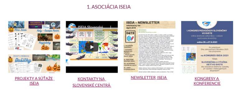 Mail: slovencina.iseia@gmail.com web: www.iseia.eu Facebook: Slovenčina vo svete Instagram: ISEIA - Slovenčina vo svete Facebook: ISEIA - Materiály na vyučovanie Facebook: Interná pracovná skupina: ISEIA - slovenské vzdelávacie centrá