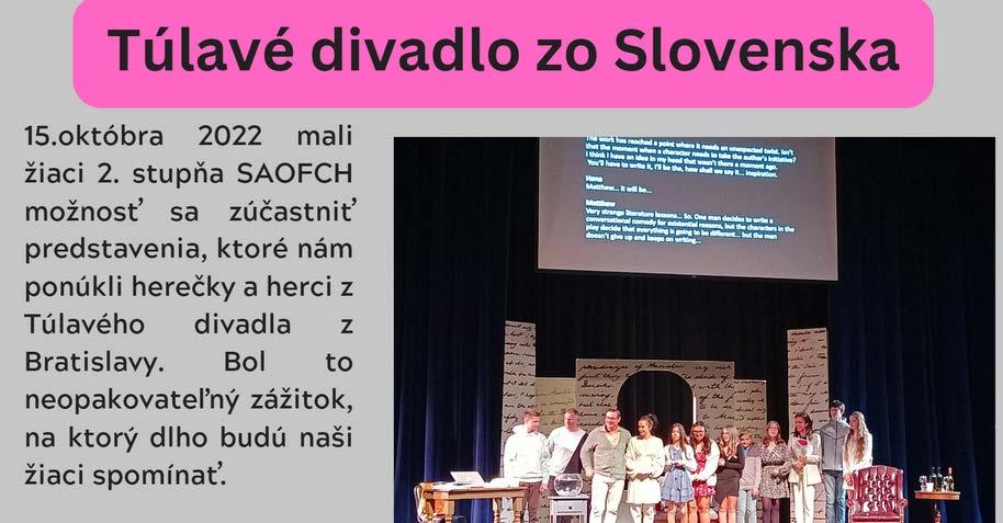 Slovenský divadelný deň v Mníchove V spolupráci s agentúrou Divadelný svet sme pripravili pre slovenské publikum v Mníchove v priestoroch slovenskej reštaurácie Drei Linden vo Schwabingu dve divadelné predstavenia. Poobede zahrali herci Zuzka Hrašková a Peter Olejár krásnu veselú rozprávku Ďuro Truľo. Kúzelná rozprávka o tom, ako hlúpy junák Ďuro zmúdrel. Interaktívny príbeh na motívy rozprávky zo zbierok kníh národného zberateľa Pavla Dobšinského plný vtipných scénok, poučných posolstiev a kúziel, do ktorých vďaka interakcii budú zapojení aj diváci. Slovenský ľudový príbeh, ktorý zabaví malých i veľkých. Pre deti sme pripravili aj detské dielne, počas ktorých si deti mali možnosť vyskúšať divadelné dosky a sami si zahrali s kulisami jednotlivé časti divadelného predstavenia.