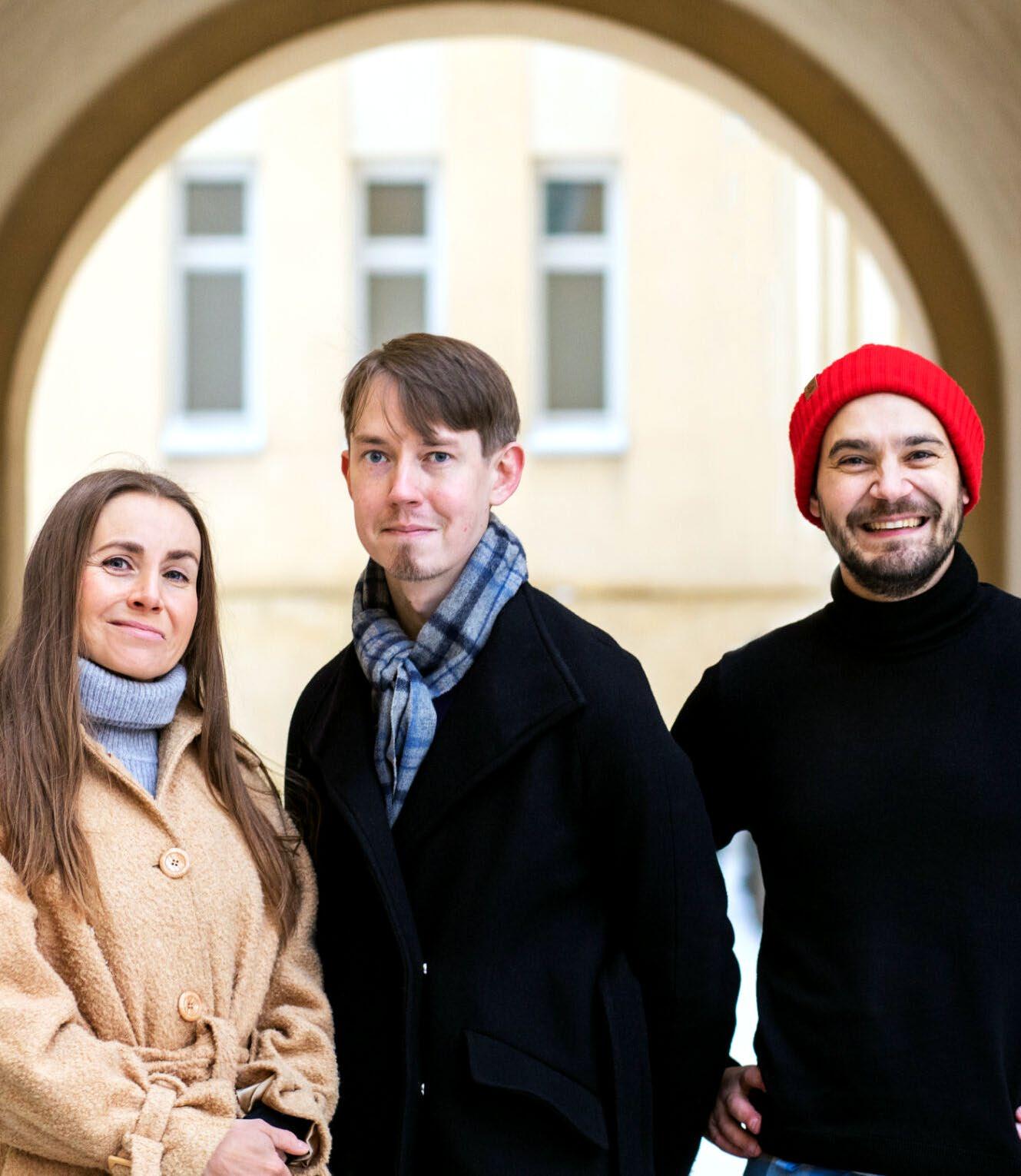 Iida Miettinen (t.v.), Eero Heikkinen och Karri Lehtonen är hjärnorna bakom företaget Kamupak. Företaget banar väg för en hållbar utveckling inom hämt och snabbmats branschen.