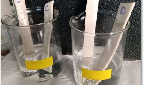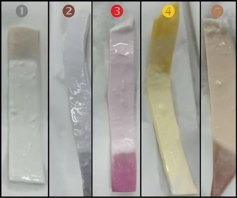 Se tomaron muestras de esta mezcla y se sumergieron en agua común y destilada, junto con pruebas del compuesto original. En este caso, no se observaron cambios de coloración en ninguna de las muestras con carbonato de calcio, lo que sugiere una relación directa entre la presencia de sílice y la alteración de color detectada. Artículo