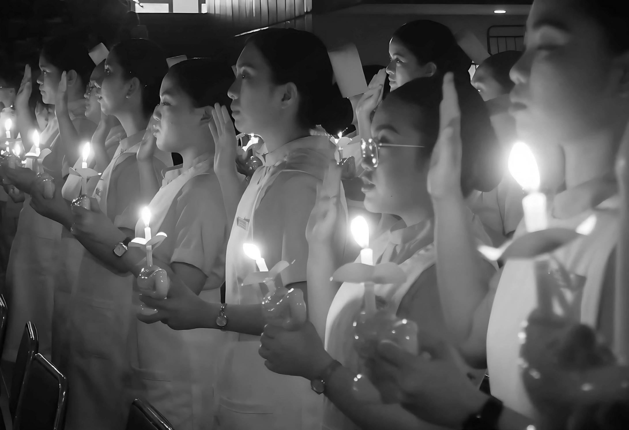 AMIDST THE SOLEMN GLOW OF CANDLELIGHT. SLU Student nurses of Batch 2027 shine brightly as they commit to a path of compassion and service during the 47th Capping, Pinning, and Candle Lighting Ceremonies. photo by AEVRIELE SIDDAYAO, EINY BARCENA, ESTHER YAOS, RENDEL RAMOS, and RONALYN JUNIO.