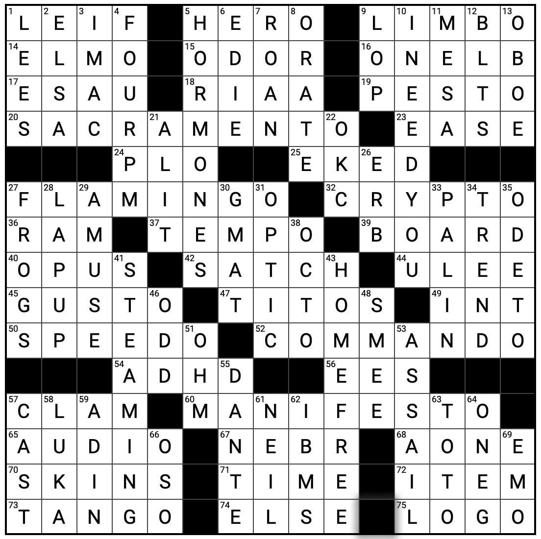 1. *No longer bubbly 5. Boat blade 8. *Nautical line holder 13. College in New Rochelle, NY 14. What Jesus calls his mother in “The Chosen”