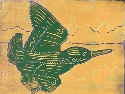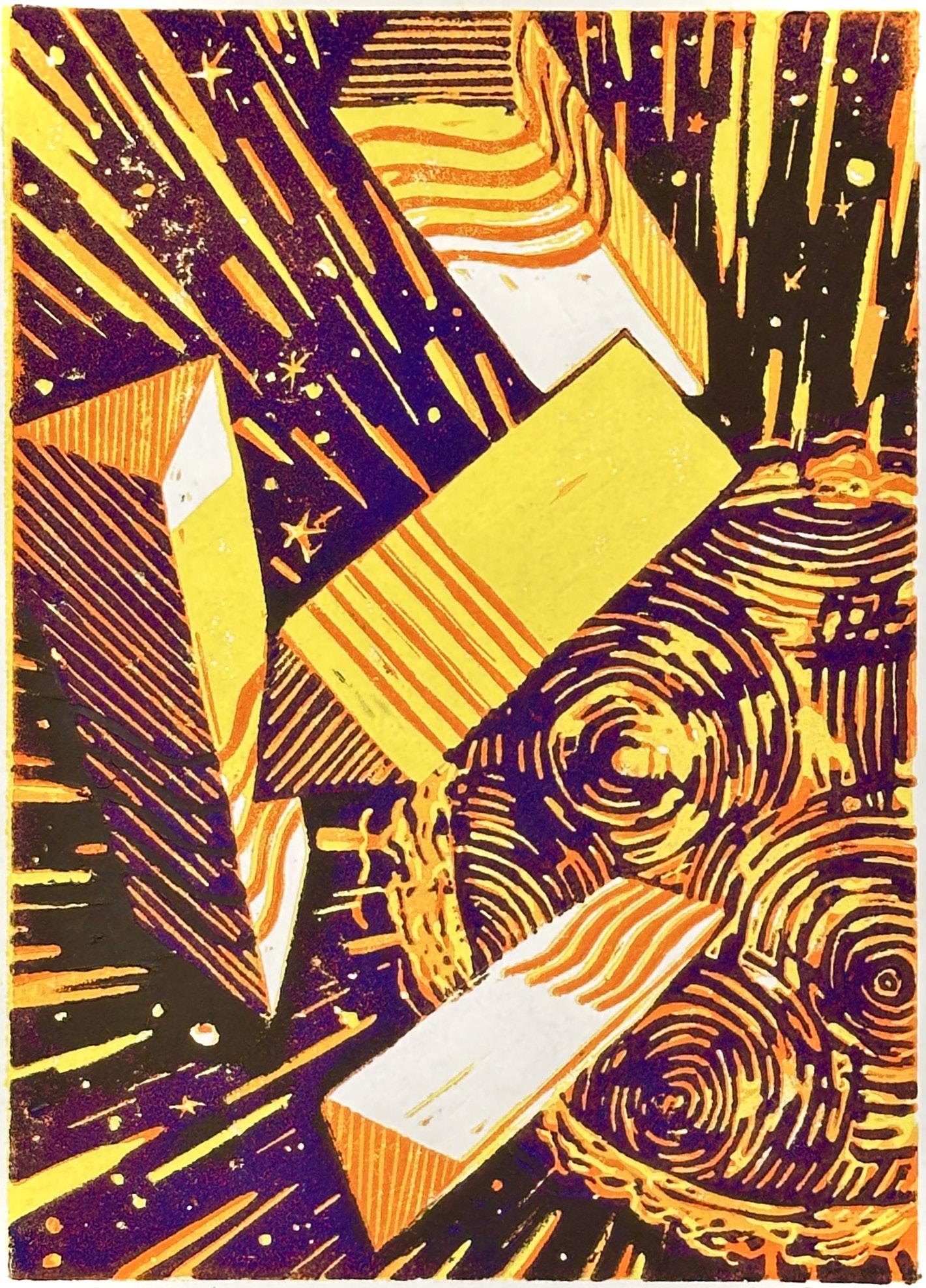 4 5th Element, print, 5-color reductive linocut by Matty Kleinberg