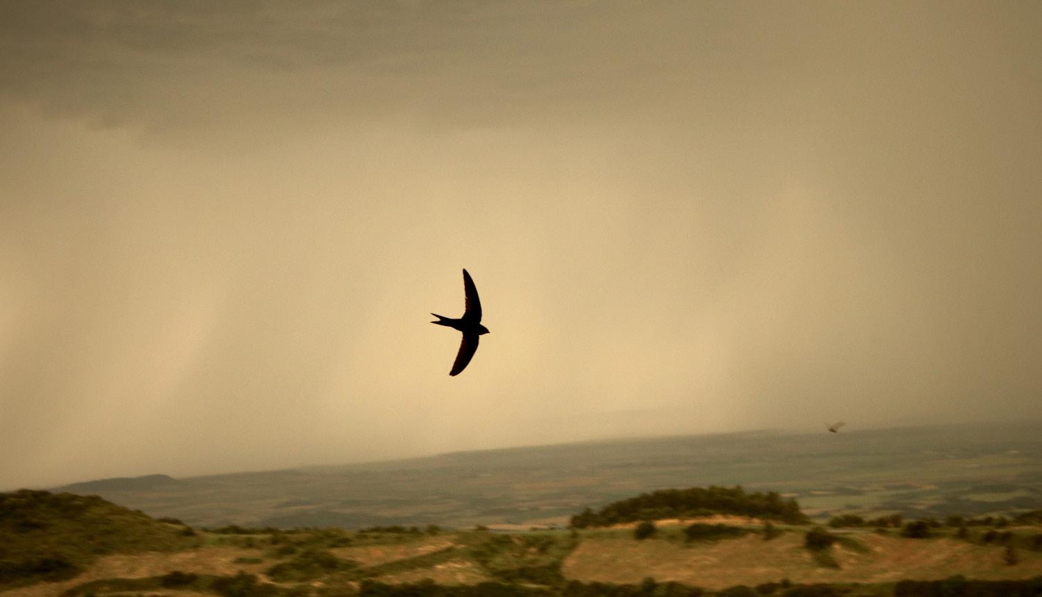 The wings, an aberration in the air, That vibrate, shine, and yet do not impair The view of all behind, the lake, The aspens, which begin to quake—