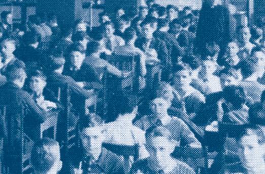 ABOVE: Anna Backer sits humbly amid the student body at the dedication of the new SLUH campus, known as Backer Memorial, in 1924.