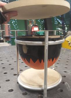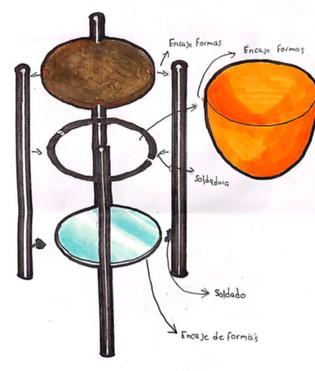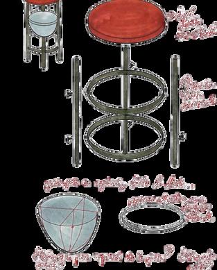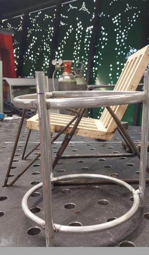 Uno de los modelos, con la estructura en soldadura junto a una idea de modelación, comparamos la estructura con una poltrona y nos dimos cuenta que estaba un poco mas grande.