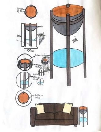 Se le bajo el recipiente y mostramos mejor como se vería lo que sostiene el acrílico de la parte de abajo a demás mostramos 2 ideas en explosión de como se podría ensamblar el mueble.