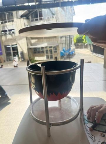 El Padre no tiene un buen lugar donde poner su vaso mientras comparte en el espacio con su hijo y/o visita