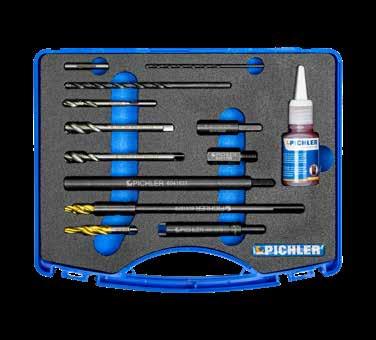 Utboring og montering av nye gjenger: Til utboring av den skadede gjengen benyttes en sentrerende styring og en spesialfres med dybdestopp, da det er svært viktig at det ikke bores for langt. Til slutt monteres ny gjengeinnsats ved hjelp av medfølgende monteringsverktøy som sikrer 100% riktig montering. Det medfølger en svært god bruksanvisning med stegvis informasjon illustrert med bilder.