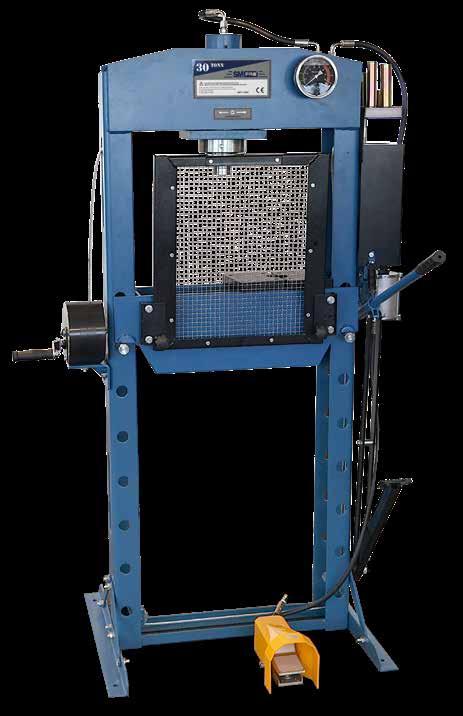 En profesjonell lufthydraulisk verkstedpresse fullspekket med utstyr. Leveres komplett med: