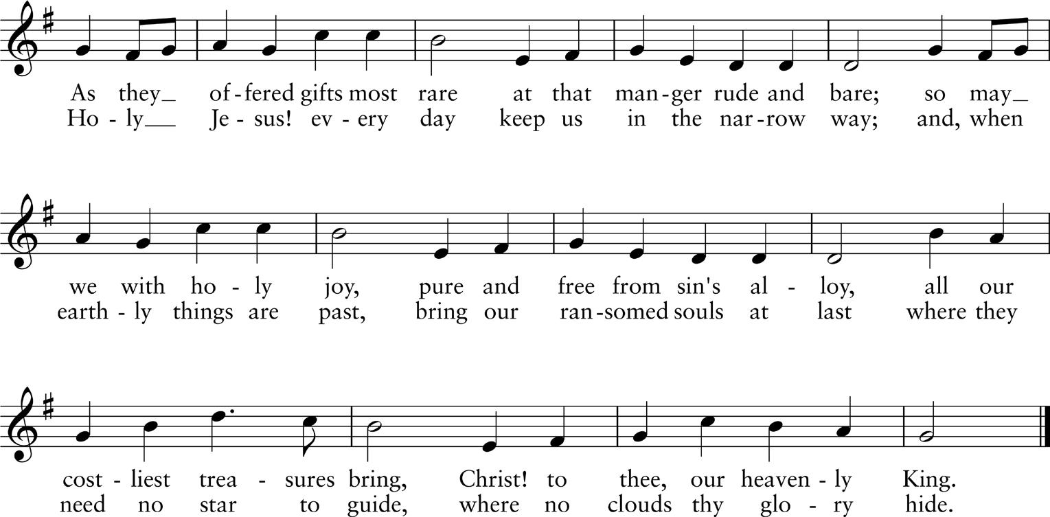 This anthem is from Mendelssohn’s unfinished oratorio Christus, which was intended to tell the entire story of Christ’s life. The first three lines of text are from the prophecy of the foreigner Balaam (cf. Numbers 24), who, despite his original intentions, was divinely compelled to prophesy good for Israel, in the person of the Messiah. Mendelssohn uses this text in conjunction with a familiar Epiphany hymn (497) to tell the story of the Magi: foreigners who see the rising Star of Bethlehem and come to worship Jesus.