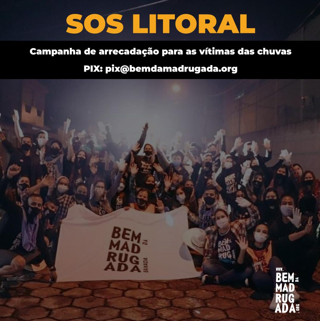 Diante dessa situação difícil, várias organizações e empresas se uniram para ajudar as vítimas das chuvas. O Bem da Madrugada, que já atua na região da Baixada Santista há alguns anos, se juntou à sua embaixada Bem da Madrugada Baixada Santista e ao Gimba (uma rede de lojas de materiais de escritório, papelaria e supermercado) para coletar doações para as pessoas afetadas pelas chuvas. A ação recebeu o nome de SOS Litoral.