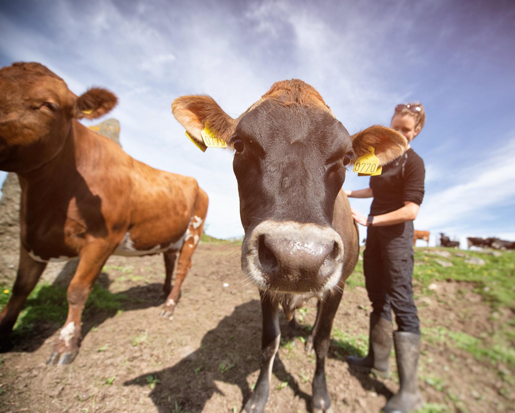 På Helgebostad går lykkelige kyr ute og inne som de vil hele året. Lykkelige kyr gir nydelige melk som vi foredler til oster i verdensklasse. Økologisk og upasteurisert. For oss er kyrne selve grunnlaget, og for oss er det svært viktig med god dyrevelferd.