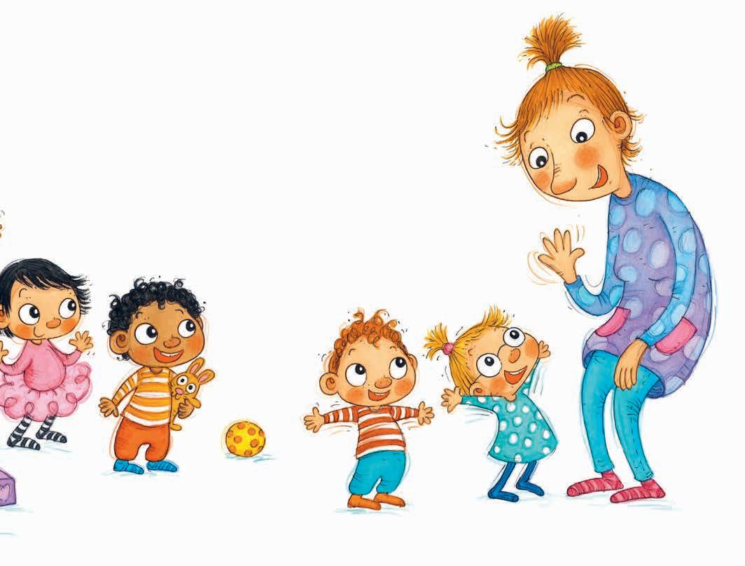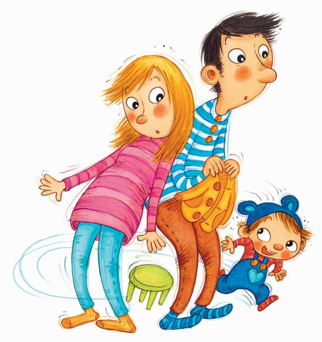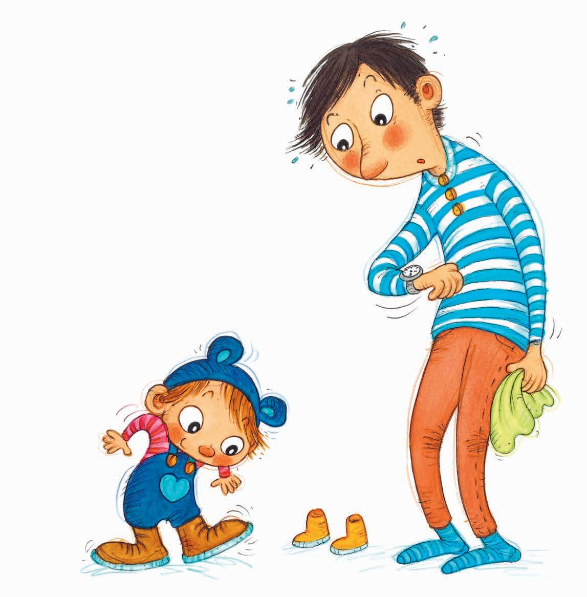 – Vi har bråttom till förskolan, säger pappa. Vi hinner inte busa.