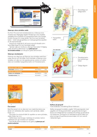 Öva kartan! Med Öva kartan! och en atlas kan man snabbt lära känna nya länder och världsdelar eller repetera namn på länder, städer, floder m m. Öva kartan! är också ett häfte för repetition av namn på länder, städer, floder, hav m m. Häftet börjar med Sveriges landskap och avslutas med en världskarta som ger överblick och repetition. Facit till alla kartorna laddar du ner gratis på gleerups.se/ skola/ovakartan Öva kartan 5-pack