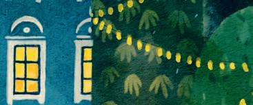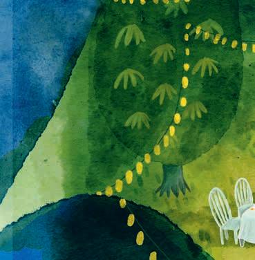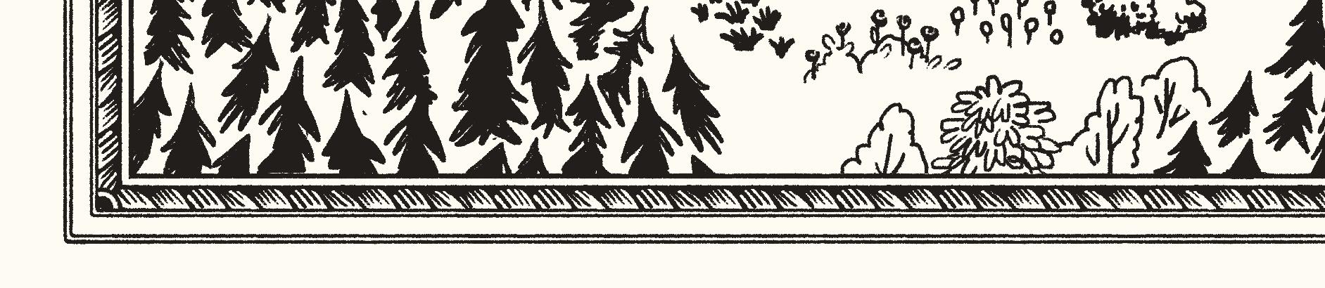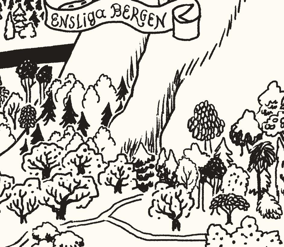 Nu kom de in i storskogens allra djupaste del. Här var träden så höga och stod så tätt att det inte gick att se himlen. Här växte jätteblommor som lyste med ett eget ljus likt ämtande lampor.
