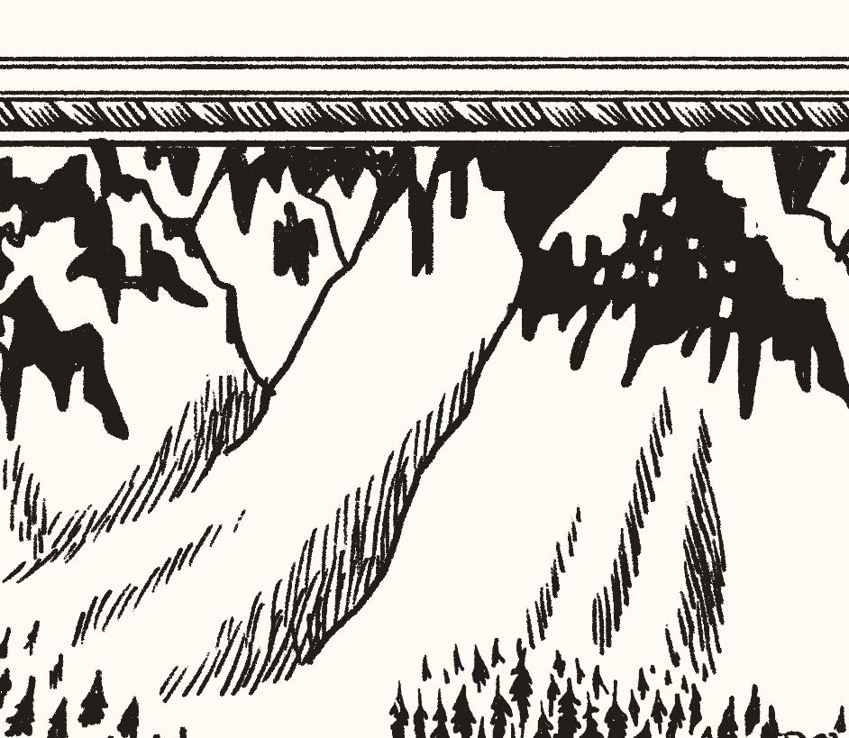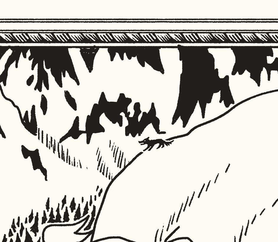 – Snö, viskade Mumintrollet. Han hade hört talas om den. Dalen var inte längre grön. Och alla levande ljud var borta.
