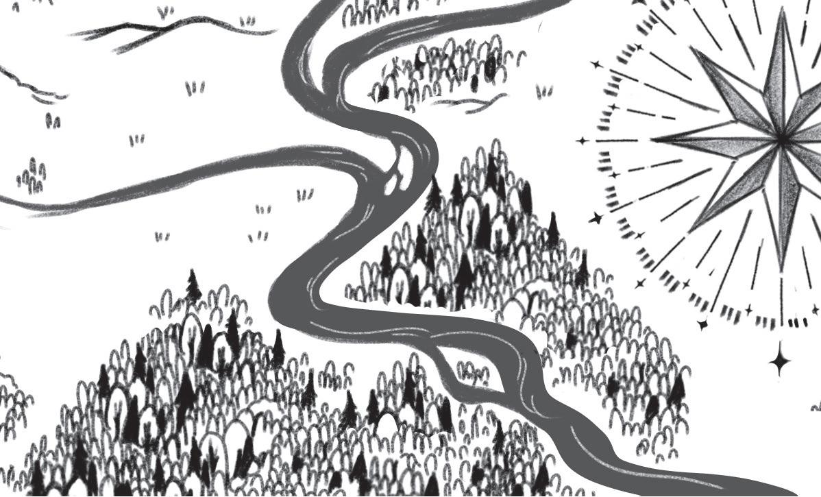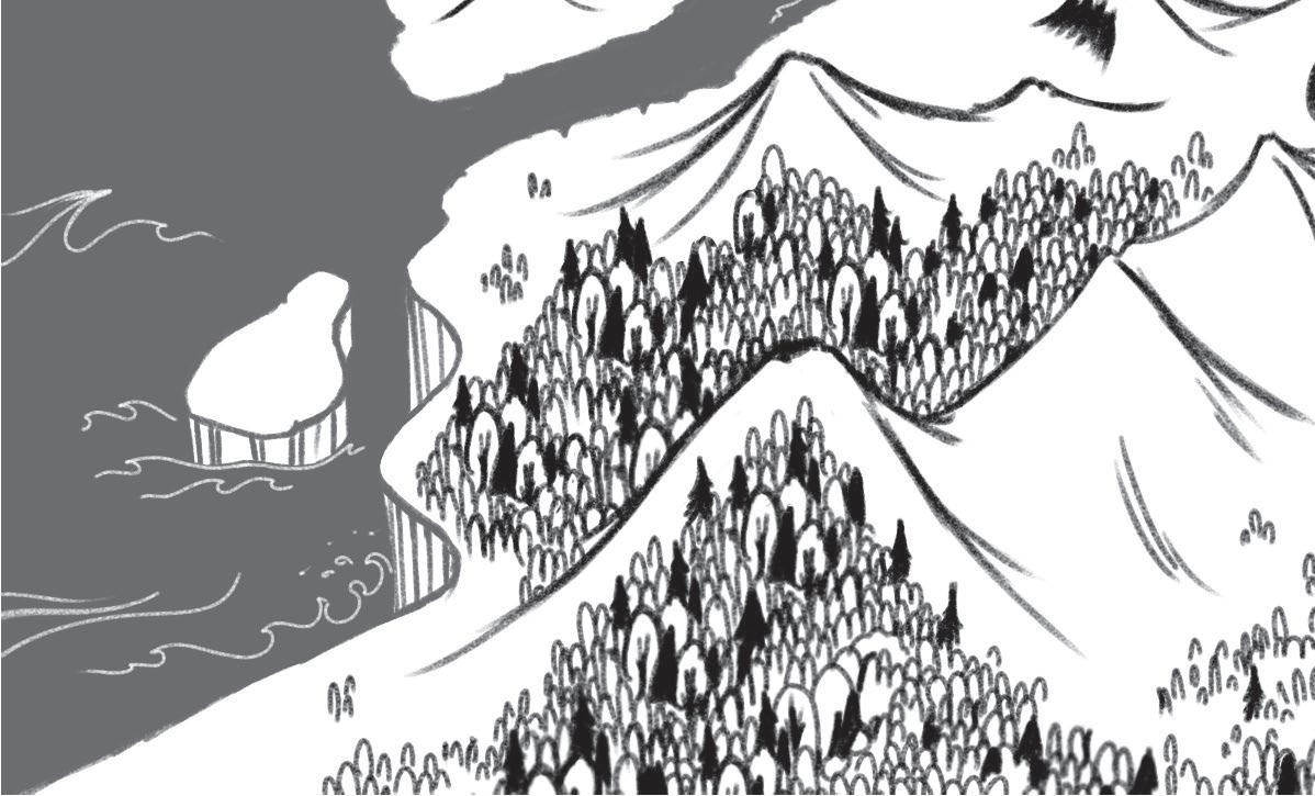 Guided by the fiery torchlight, the two children rode Bjørn over the tundra, his paws crunching through glittering snow, until they reached a small lake on the outskirts of their village. Deep in the heart of a hundred fir trees, the lake was milky-white, its thick ice glistening. There, they strapped their bone skates to the soles of their boots and stepped on to the lake.