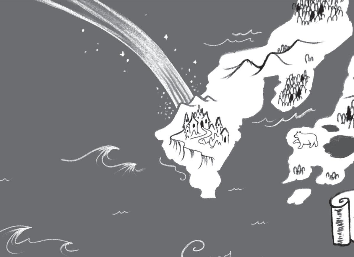 ‘Already?’ Saga frowned. Their village was one of many scattered around the north of Norvegr, but if you voyaged further still, across a perilous sea to the frozen islands in the Far North, you would find the sorcerers. According to legend, the sorcerers were so powerful that they crackled with magic, and their special magically forged tools were the only ones that could prise ice crystals out of the stone that was found deep down on their islands.