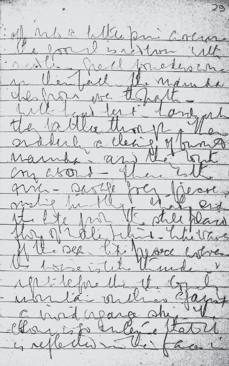 Katherine Mans eld’s handwriting at speed was frightful, ‘often so impenetrable that one cannot always be sure of the spelling of a word’, as Margaret Scott, the heroic editor who rst transcribed Mans eld’s complete notebooks for publication, has said. Here is an example of what Scott and other scholars have had to grapple with, a page from Katherine’s Urewera journal: