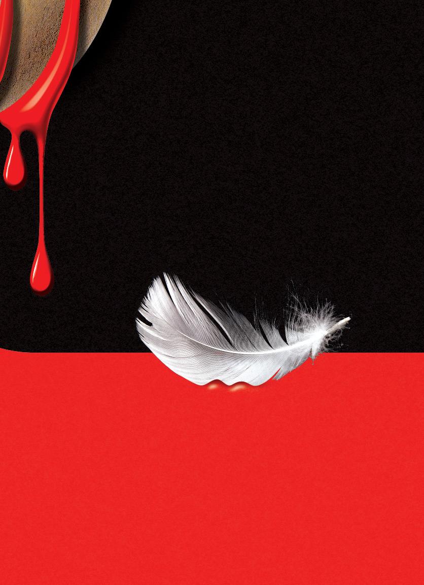 Kiril pushes to the front, ignoring the looks that land sourly on him, then turn confused as they try to place him. As rare as strangers are in Koprivci, rarer still are men who return once they’ve left. He steps around two women praying side by side, their faces tear-streaked and their hands clasped so hard that their chapped knuckles are turning white. A breeze curls something like dandelion fl uff around them. The priest raises his voice; his wide black sleeves drape him like a bat when he lifts his hands. “Please,” he cries, “we will resolve this calmly.” But his long face is scrunched, and the large brown mole on his cheek quivers like an agitated housefly. A toothless old man turns from the scene in disgust, and through the gap he makes, Kiril sees that the stone steps are strewn with white and brown feathers. Unnaturally fl attened onto its back, in a circle of down, lies a dead chicken.