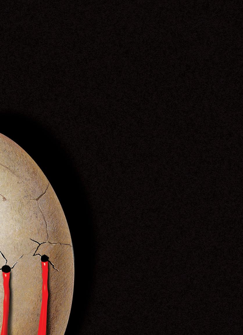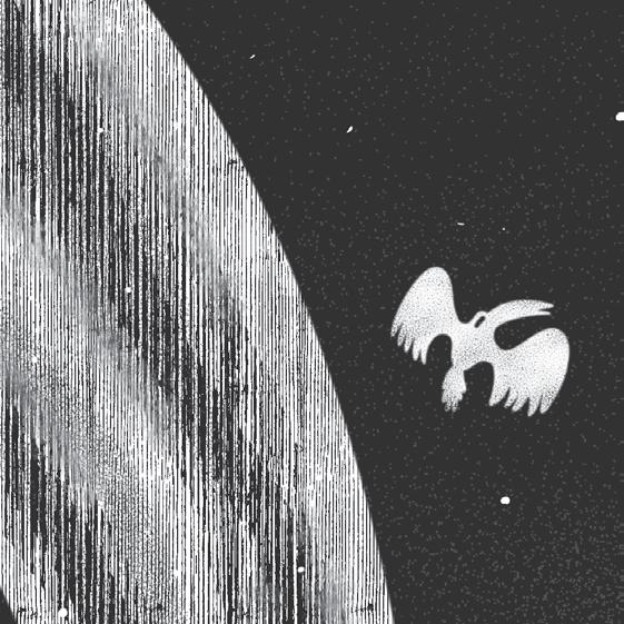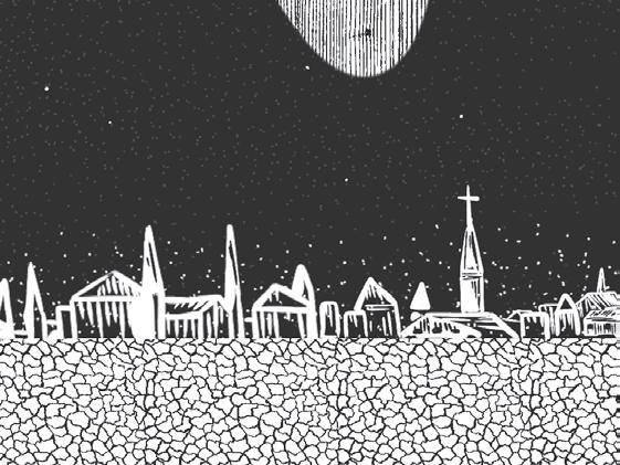 The square is crowded. Kiril thinks he may have lost track of the days, that his neighbors are gathering for Sunday service, but nobody is going inside. A half-moon of people butts against the wide, fl at steps of the church, pulled towards a lodestar he can’t see. Their feet stir yellow dust into a low fog. He catches fl uttering glimpses of their expressions, disgusted and afraid. His horse parks herself in front of the first trough. She gives an irritable swat with her tail when he tries to urge her on, so he dismounts and hitches her in place. His spine clicks