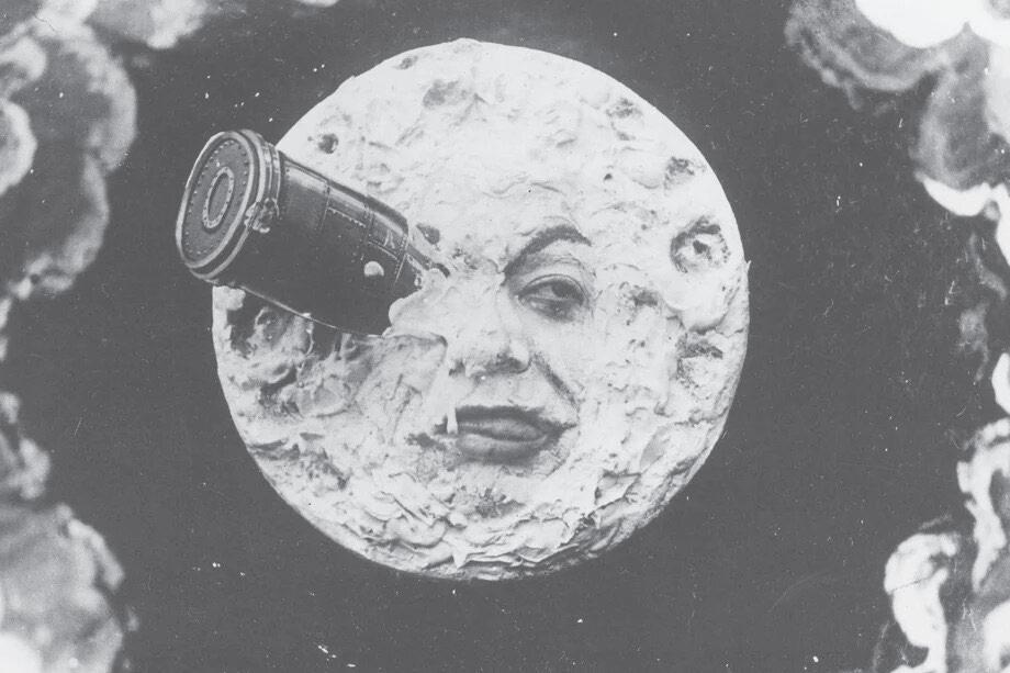 This is the free-associative way in which my mind works. Eventually, I also remembered Georges Méliès’s fourteenminute silent film Le Voyage dans la Lune, the early-cinema classic from 1902 about the first men to reach the moon, traveling in a bullet-shaped capsule fired from an immensely long cannon, wearing top hats and frock coats, and carrying umbrellas. This is the most famous moment from that film—the moon landing: