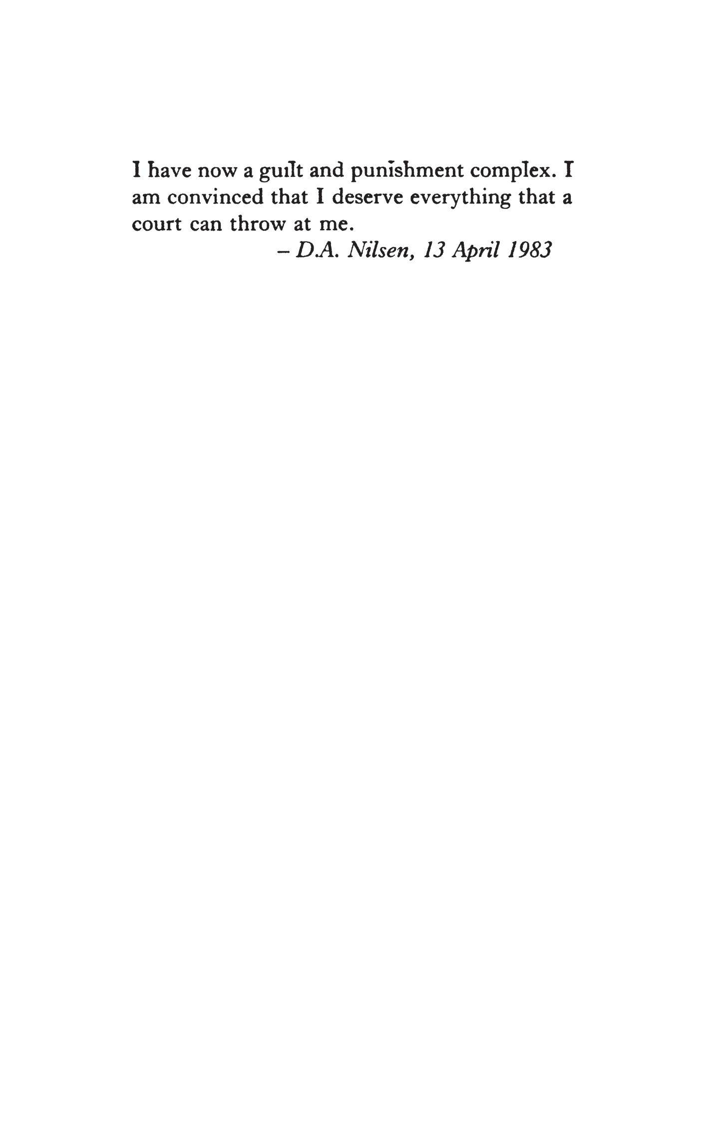 My own involvement with the case began almost immediately after Nilsen’s arrest. Like everyone else I read about it in the morning papers, and especially of the bafflement of police officers whose task it was to question him. All their initial evidence was volunteered by him over several days of close enquiry. They xiii