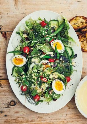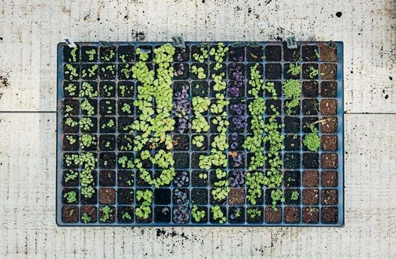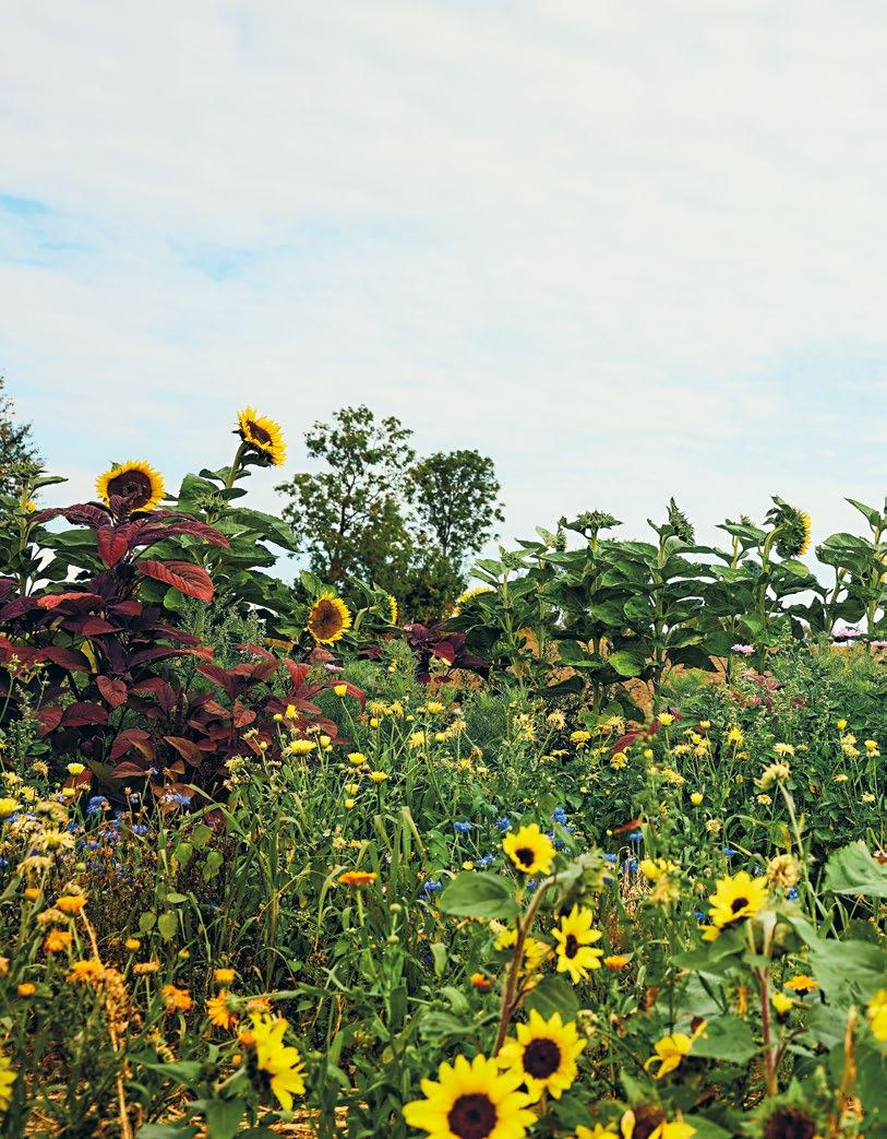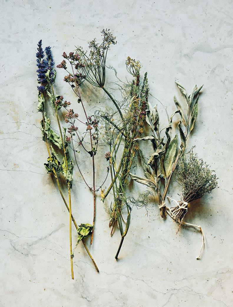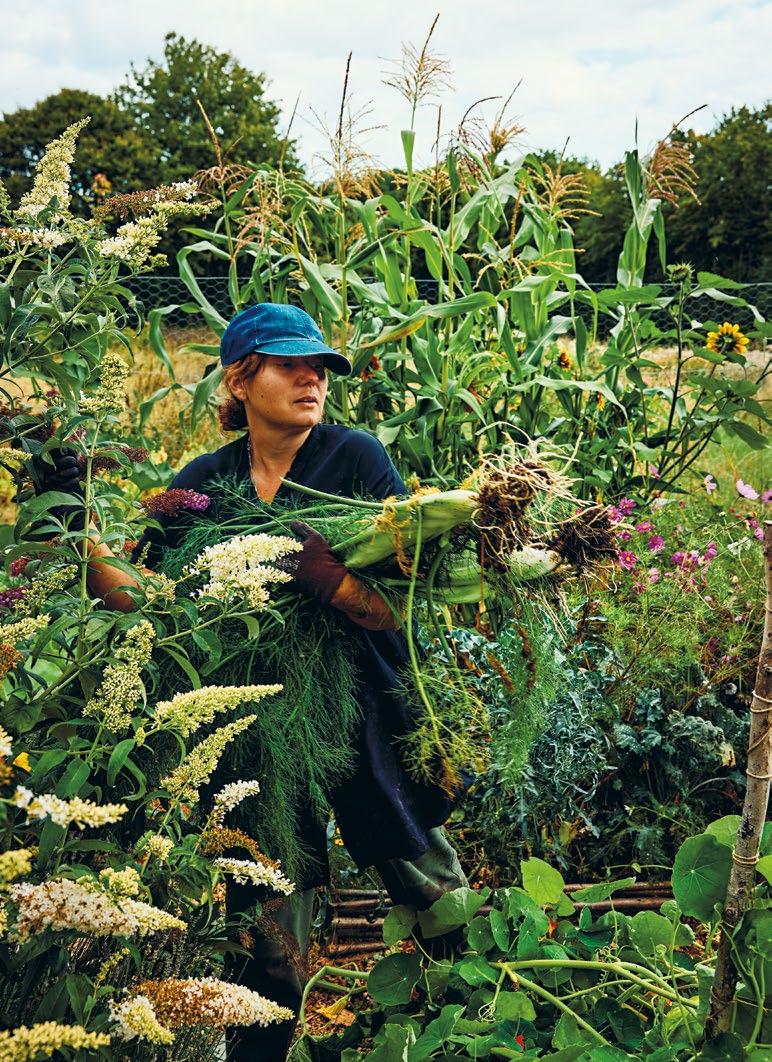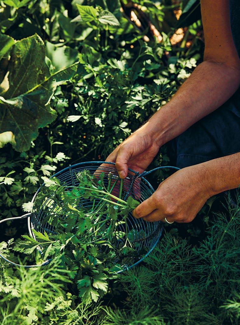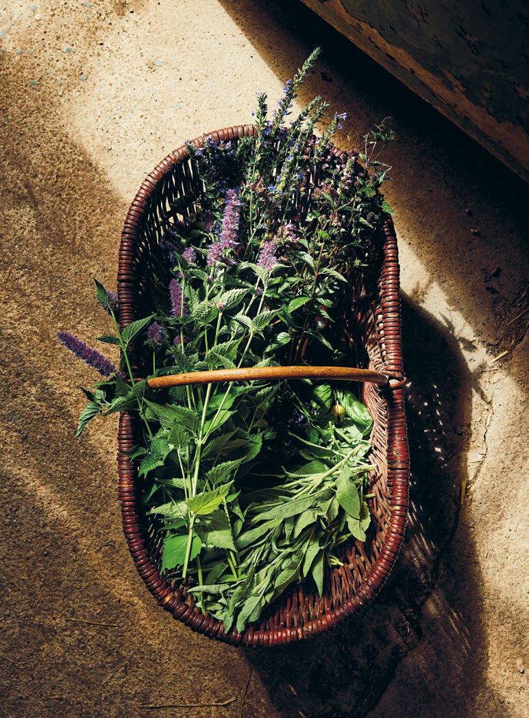 grönsakerna. Utanför köksingången finns en perfekt placerad örtagård som tidigare ägare anlagt. Den kallar vi ”den övergivna köksträdgården”, eftersom den helt tagits över av spansk körvel och kungsmynta. Varje år säger jag att jag ska ta tag i platsen, men det finns alltid en massa annat att göra i de andra odlingarna. En dag händer det. Kanske i sommar?