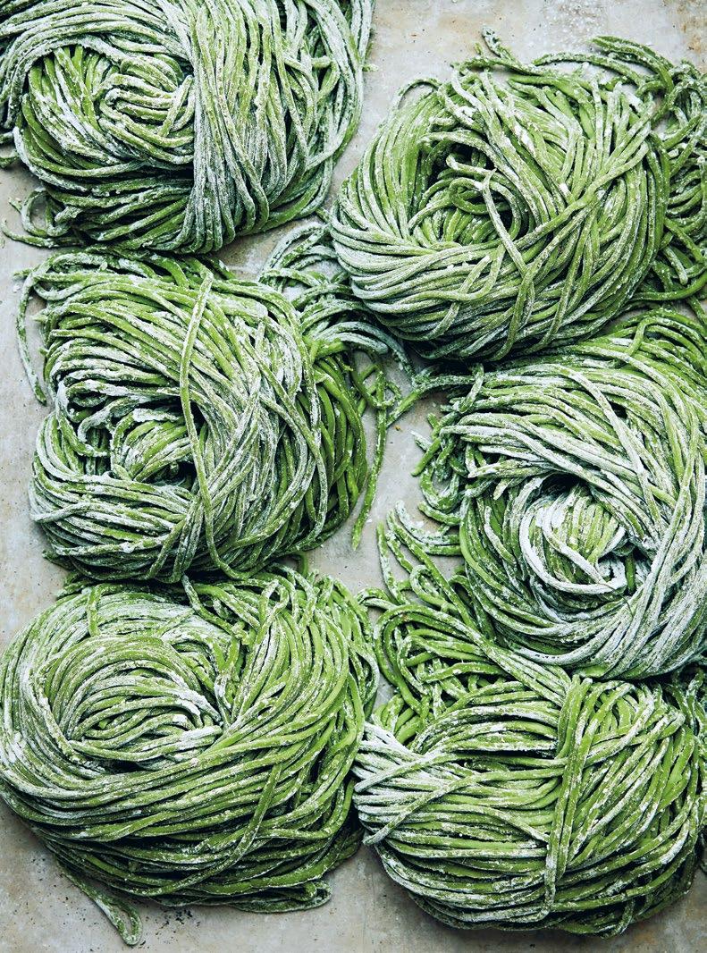 8. Rulla ut degen, vik ihop den och skär som tagliatelle. Koka direkt eller lägg i kylen upp till 2 dagar. De kan även ligga i rumstemperatur 1 dygn för att torka helt.