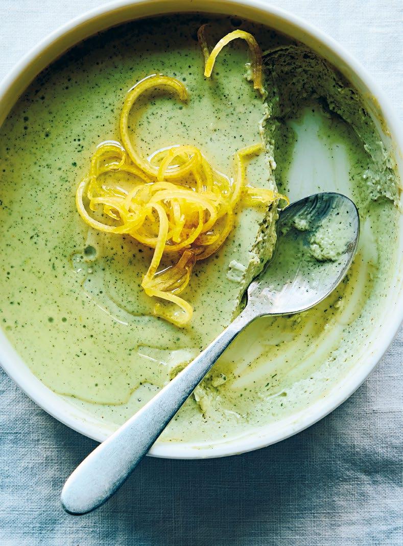3. Knäck resten av äggen i gropen. Tillsätt den gröna purén.