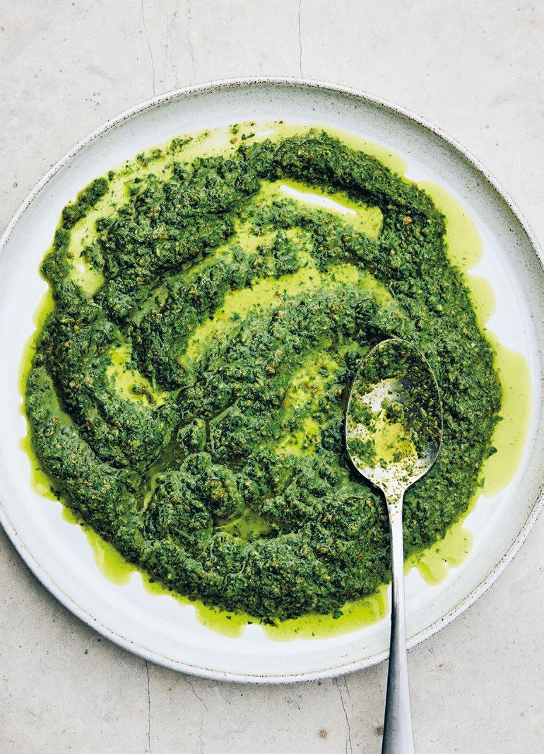 Kungen av örtsåser, och antagligen den mest använda i världen, vars namn egentligen bara betyder grön sås. Persilja är grunden, men vill du göra en fransk variant använder du dragon och för en mer spansk/mexikansk stil tar du koriander. Genom åren har många varianter av den gröna såsen passerat. På 80 och 90talen hade man till exempel isbergssallad som stomme i de svenska restaurangköken – kanske på grund av att örter var så dyra och för att vi på den tiden inte använde lika mycket örter i matlagning som vi gör idag. Ha gärna en burk salsa verde i kylen att ringla över grönsaksrätter, pizza, bröd, risotto, soppa, pasta och sallad.