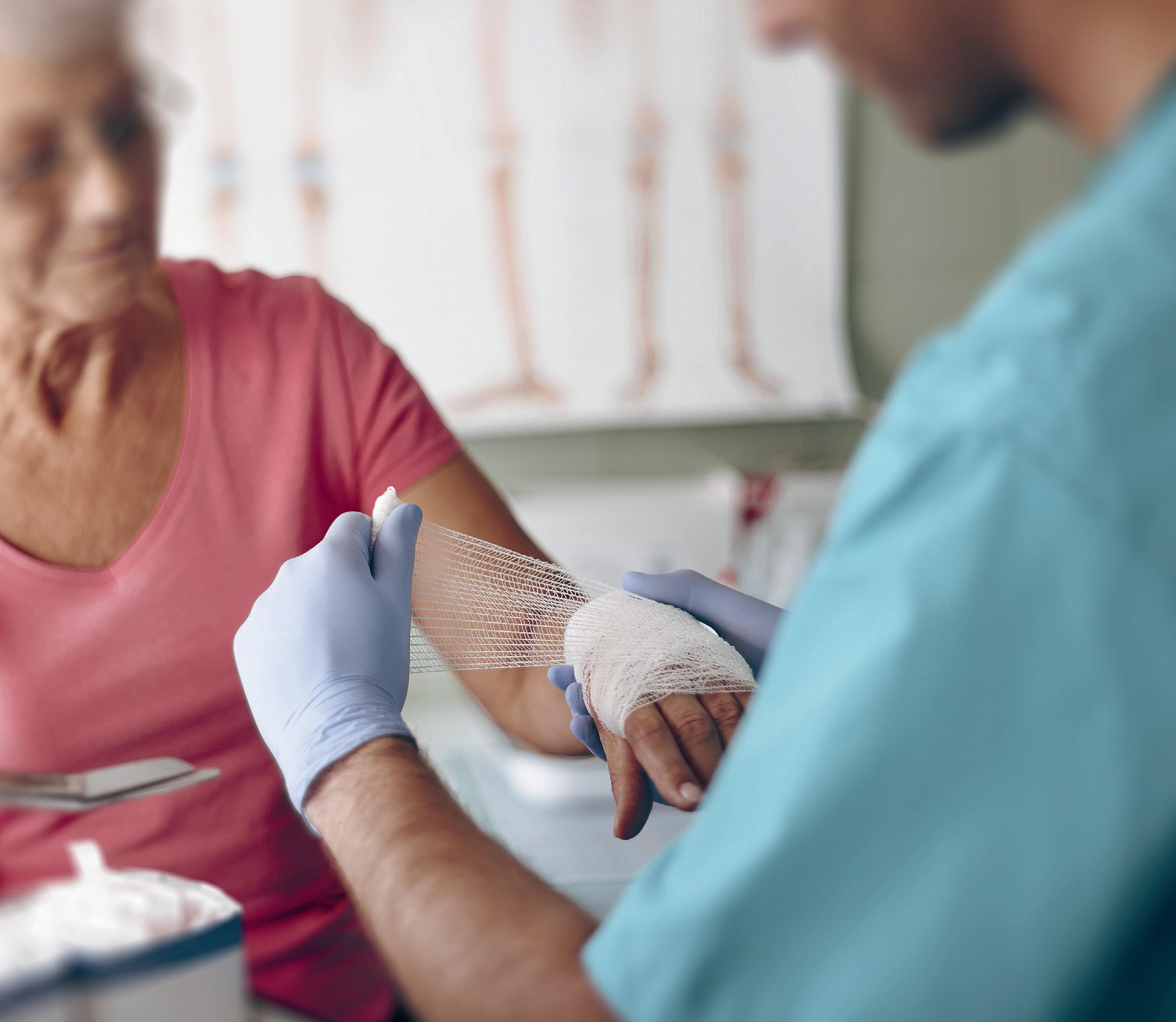Vård- och omsorgspersonal kan få i uppgift att lägga om sår. Sårets läkning ska noga dokumenteras.