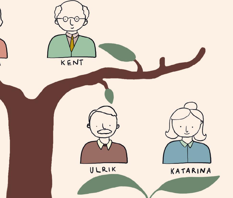 I släktträdet ser du Gunilla och Kent, som tillsammans har barnen Nadja och Ulrik. Nadja är gift med Tilda och tillsammans har de dottern Lycka. Ulrik är gift med Katarina, tillsammans har de barnen Alma och Gustav. Arbeta med uppgifterna – varje fråga besvaras fristående.