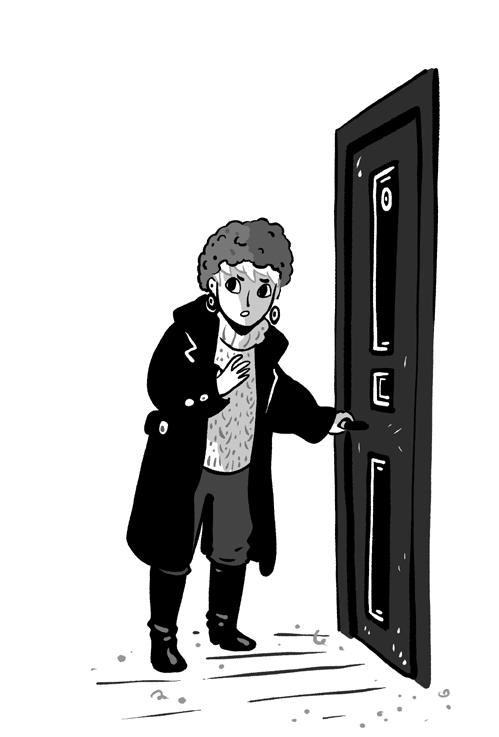 Mamma stänger noga dörren till trapphuset och ser sig omkring.