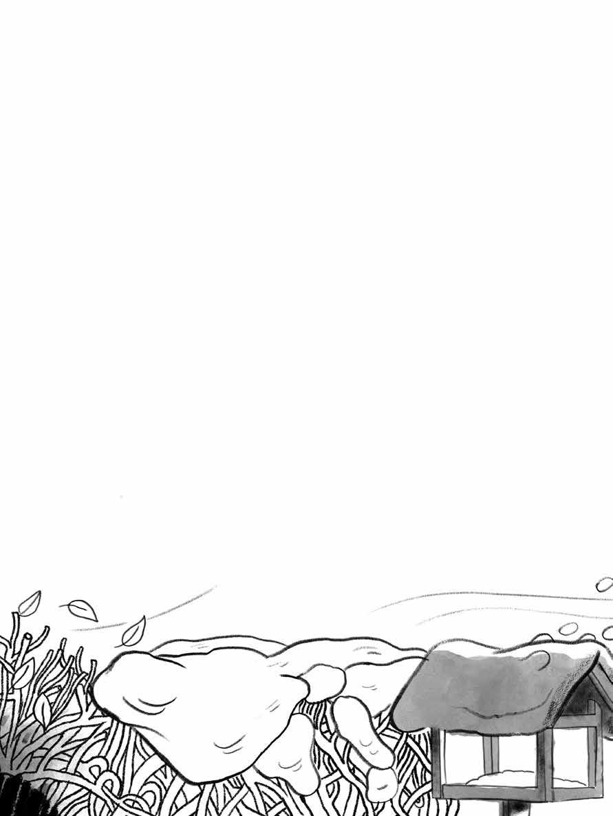 brukade lägga ut frön och nötter, brödsmulor och äppelbitar. Varje gång mamma kom in i köket stannade hon och glodde på alla fåglar som slogs om maten där ute i kylan.