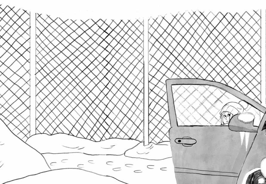 släppte av mig på parkeringen vid fotbollsplanen.