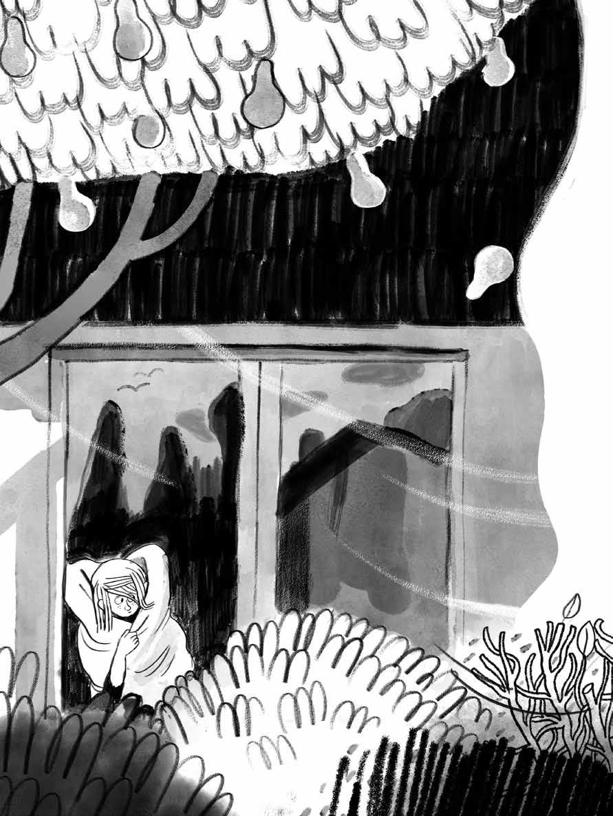 Det var sportlov då. Jag satt vid bordet i köket och ritade öar med ljusgröna skogar och blålila hav. Båtar som seglade och solar som blänkte. Varma vindar och fåglar som sjöng.