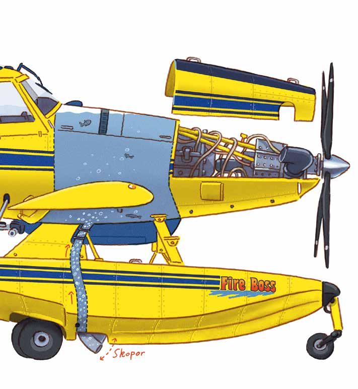 Här är brandflygplanet. En Air Tractor AT-802F. Det är ett propellerplan med både hjul och pontoner, så att det kan landa på vatten. Planet, som är tillverkat i USA, har också ett smeknamn. Fire Boss. Alltså Brandchefen.