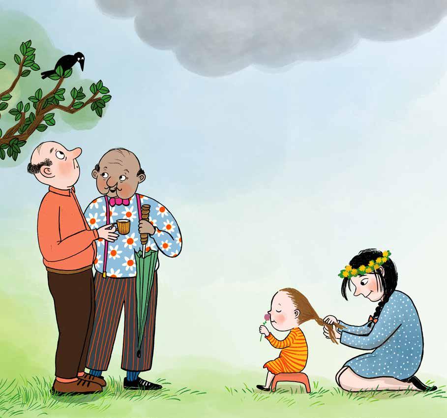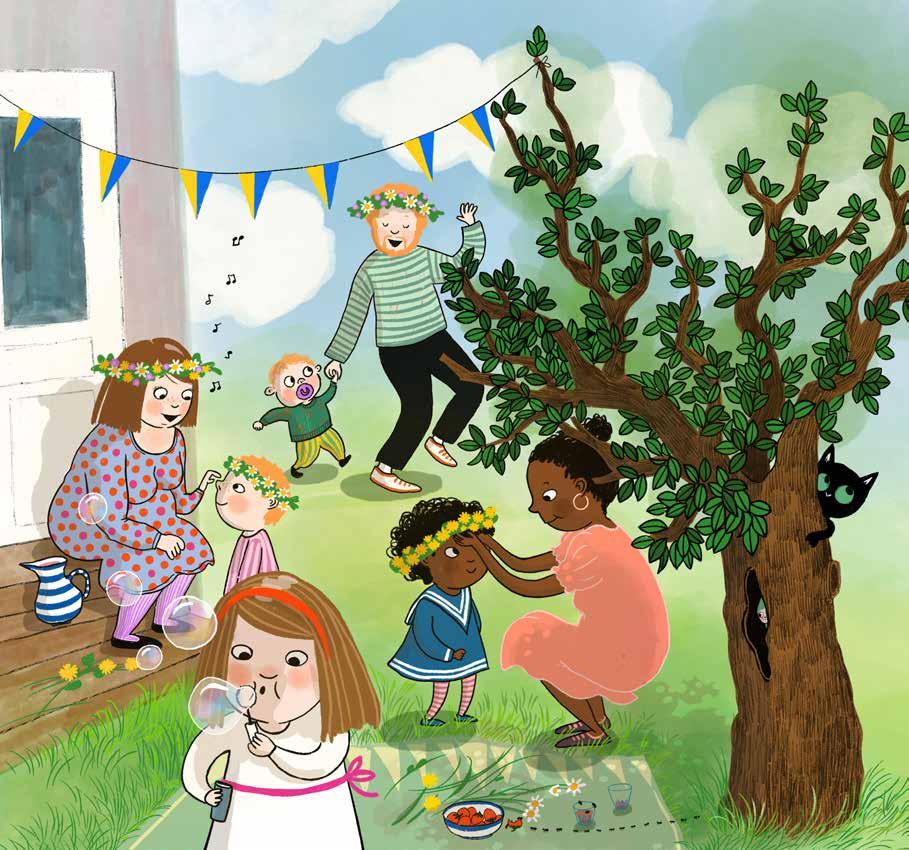 Räknar fräknar, binder kransar, mamma nynnar, pappa dansar. Flätar flätor, fina kläder. Undrar vad det blir för väder?!