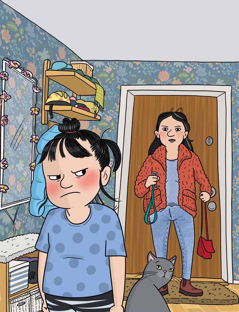 Den de är arga på är mamma, för hon har bestämt att Idde inte får sova över hon sin kompis Miriam och se på film ikväll.