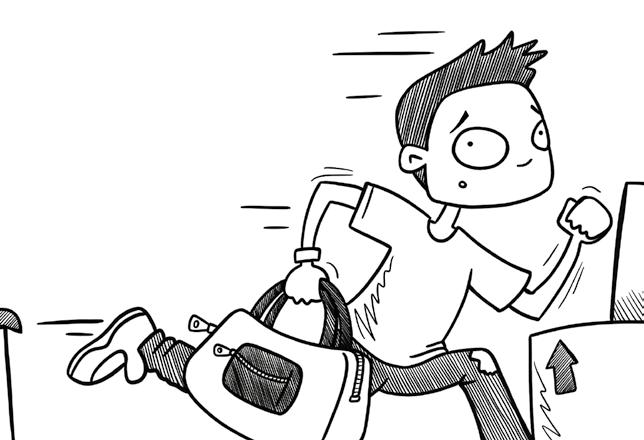 ”Skynda på! Vi åker om tio minuter!”